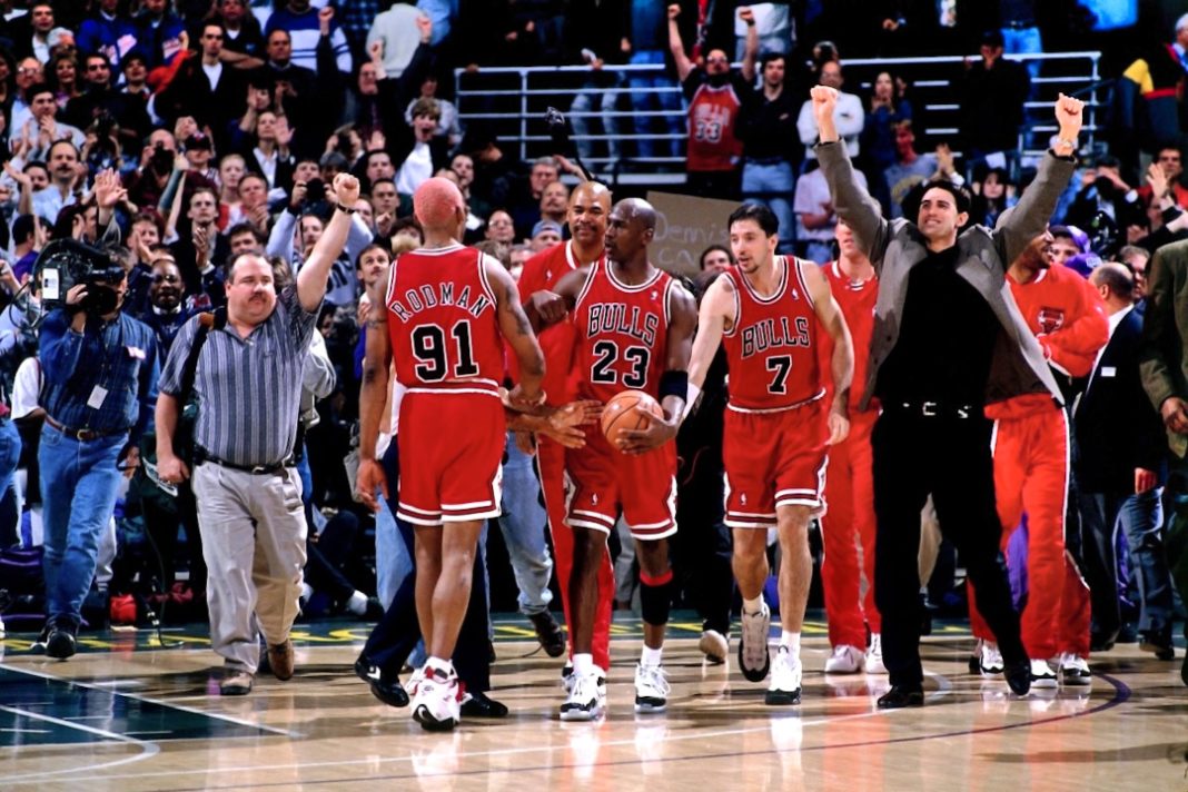 On the roster of those Bulls were the aforementioned ex-Celtic Robert Parish who retired after that season, the Croatian Toni Kukoc, the future coach of the Golden State Warriors, Steve Kerr, one of the best rebounders in the league in Dennis Rodman, Jordan’s squire, Scottie Pippen, “His Majesty”, Michael Jordan, the legendary coach Phil Jackson and the architect of the entire project, Jerry Krause.